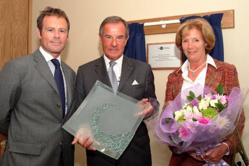 (Lord and Lady MacLaurin recieving a presentation plate at the opening of the MacLaurin Building)
