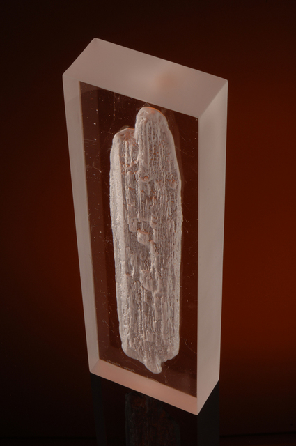 A negative cast of the rotten wood, highlighting the contrast between the rigid machined framework and the organic decayed form of the wood